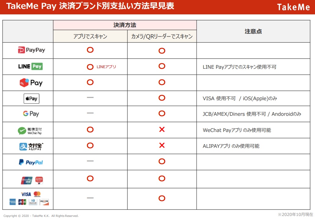 - 【よくあるご質問】|決済ブランド別決済方法・使い方【TakeMe Pay】 - 2020年11月11日