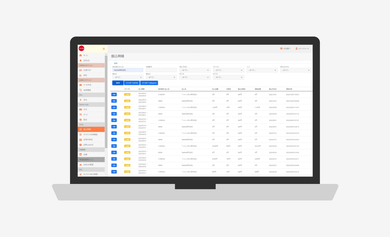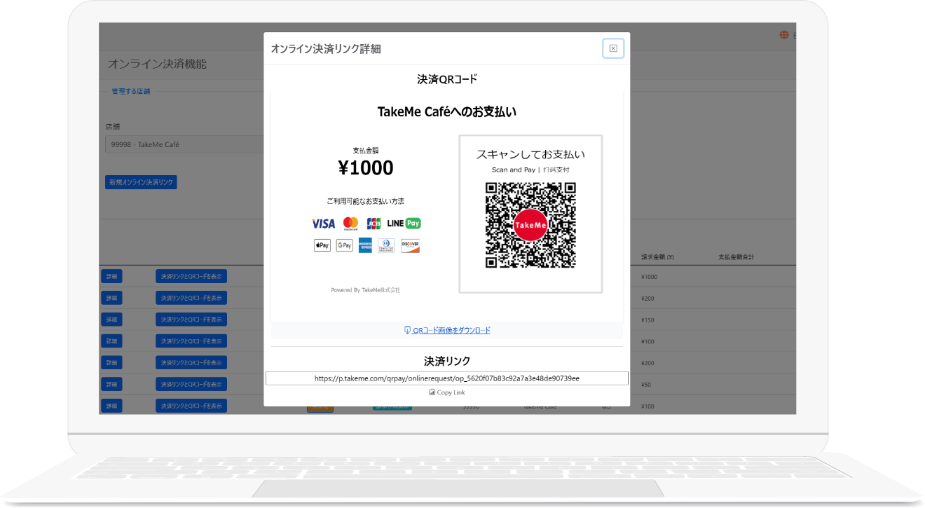 TakeMe Pay リンク決済で、
