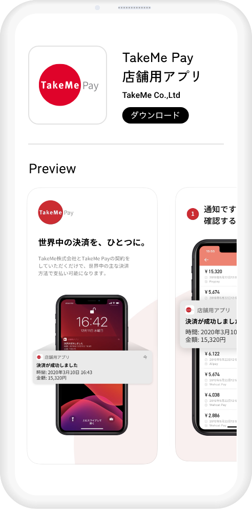 TakeMe Pay 店舗アプリが